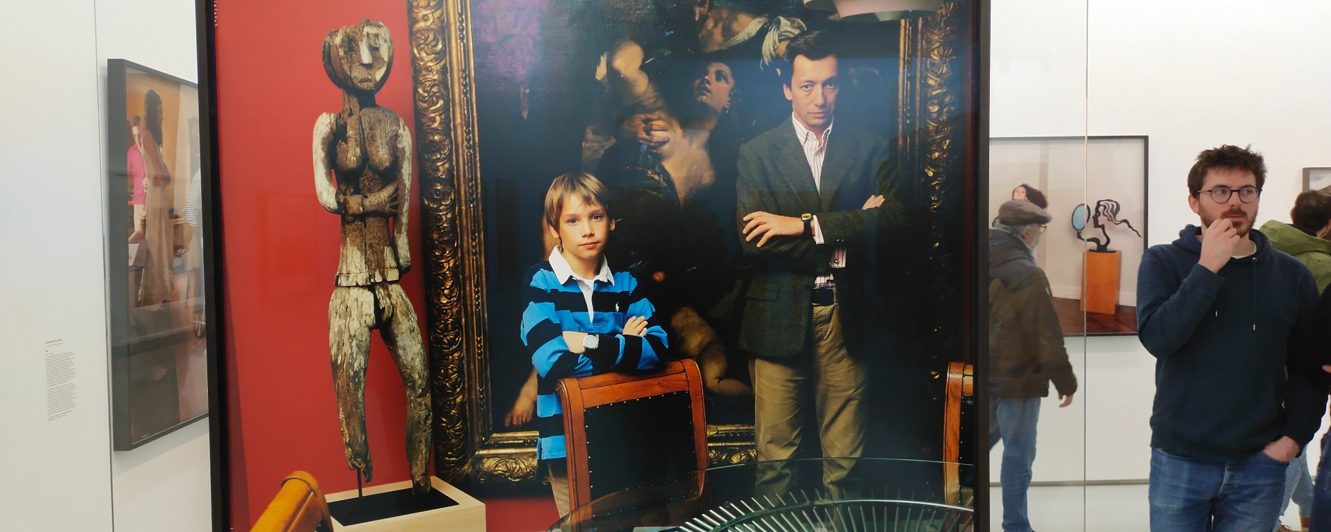 Plongez dans l’histoire familiale de la photographe américaine Tina Barney au Jeu de Paume. Le musée parisien lui consacre une belle exposition avec une sélection de 55 tirages à grande échelle, en couleur ou en noir et blanc. Dans les salles du rez-de-chaussée du musée, le spectateur voit la vie de l’artiste défiler devant ses yeux à travers différentes prises de vue dans le cocon familial. Ici, sa sœur Jill qui pose sur le canapé avec leur mère au second plan. Là, ses enfants Tim et Phil qu’elle accompagne autour d’un barbecue dans ce que l’on peut supposer être le jardin de leur maison. Là encore, sa sœur photographiée devant la télévision, et qui grâce à un effet de superposition, pourrait laisser croire qu’elle en est la présentatrice.